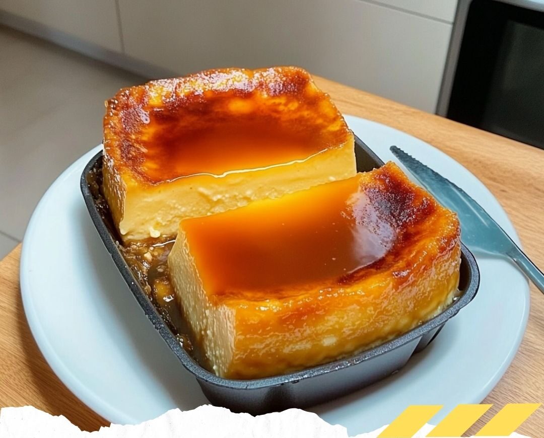 1- Lorsque le caramel est prêt, le verser dans un plat en pyrex.