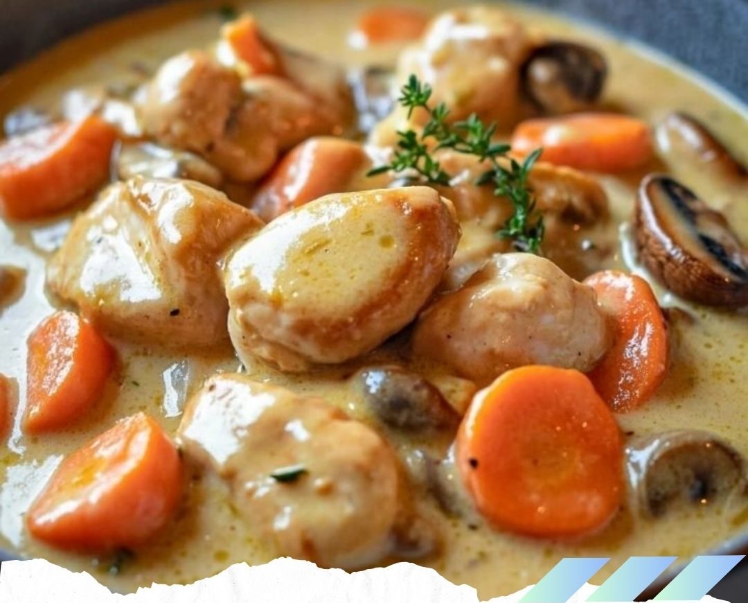 11. Servez la blanquette parsemée de thym frais et ajustez l’assaisonnement avec du poivre.