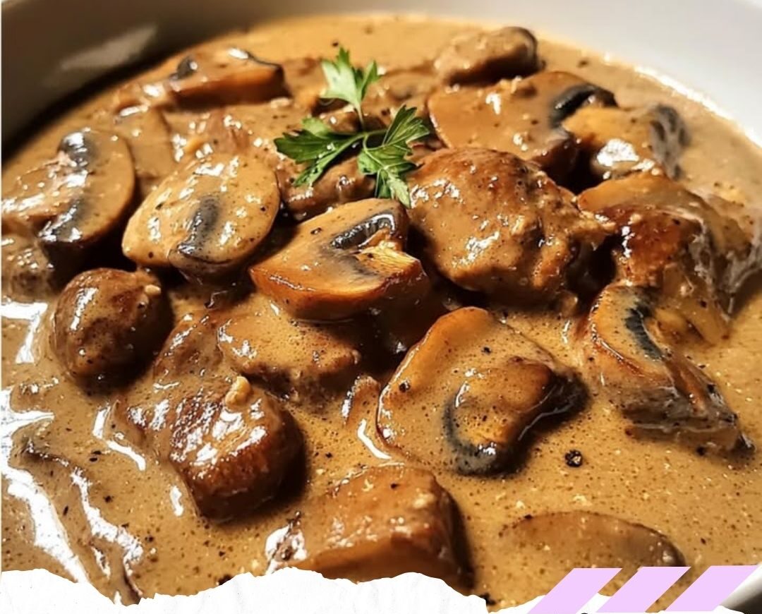 6. Servez : Servez le Bœuf Stroganoff chaud, garni de persil frais, accompagné de pâtes, de riz ou de purée.
