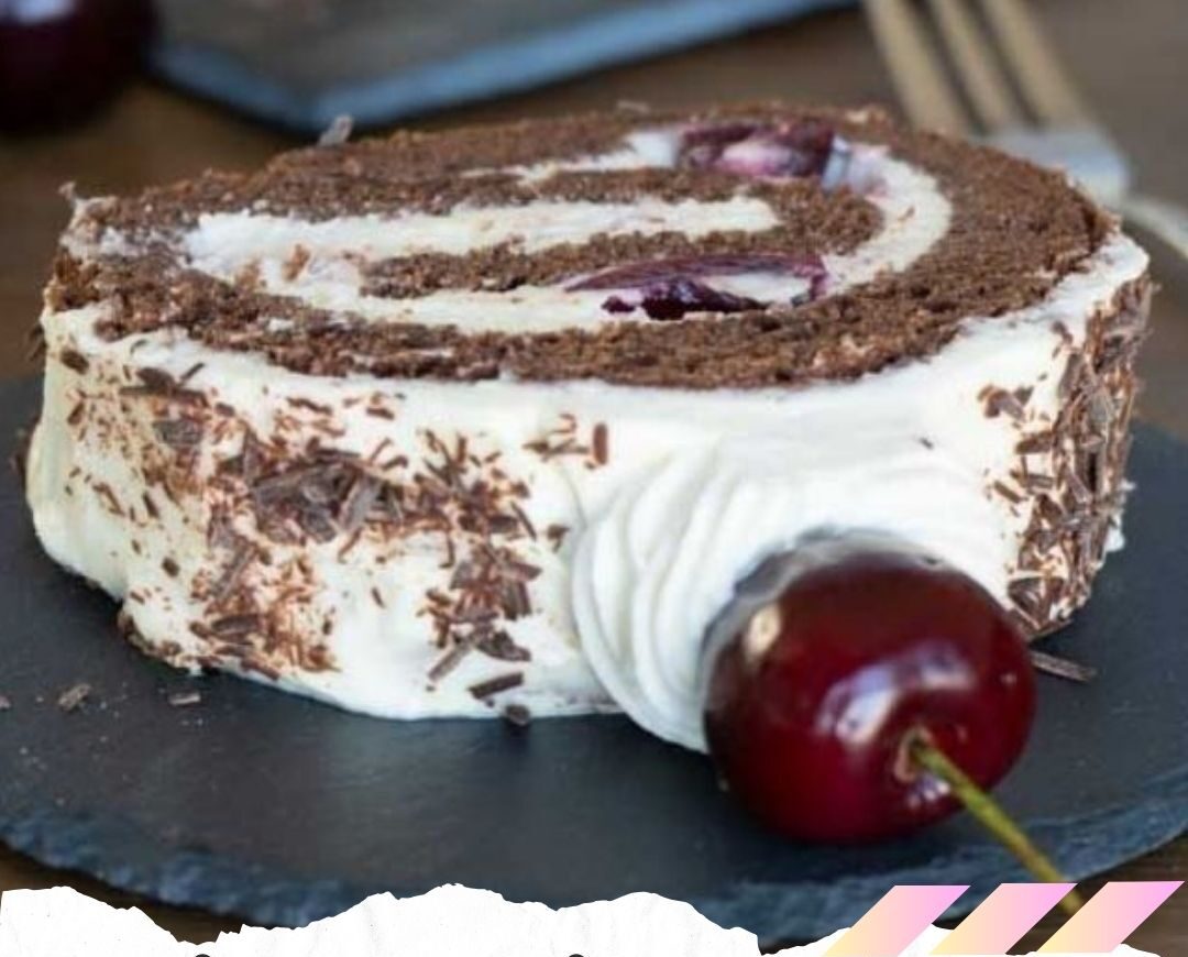 Montage de la bûche : Étaler une couche uniforme de crème sur la génoise imbibée, puis répartir les cerises. Rouler délicatement la génoise pour former la bûche. Recouvrir d’une fine couche de crème. Décorer avec des copeaux de chocolat et des cerises entières.