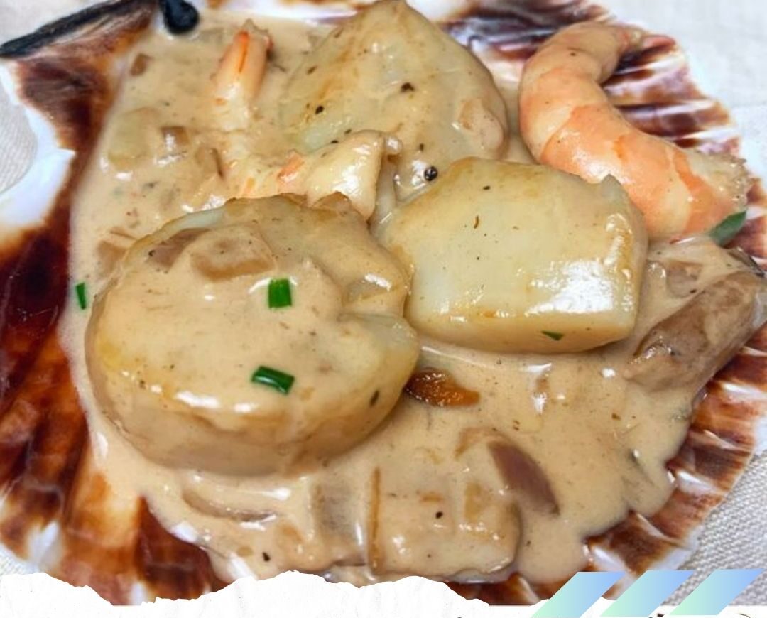 3. Saisissez les noix de Saint-Jacques dans du beurre, flambez-les au calvados. Mélangez les champignons, échalotes, jaune d’œuf et crème fraîche hors du feu, cuisez 5 minutes en remuant.