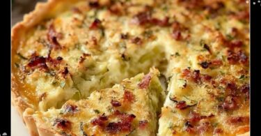 Tarte fondante aux courgettes et lardons gratinée