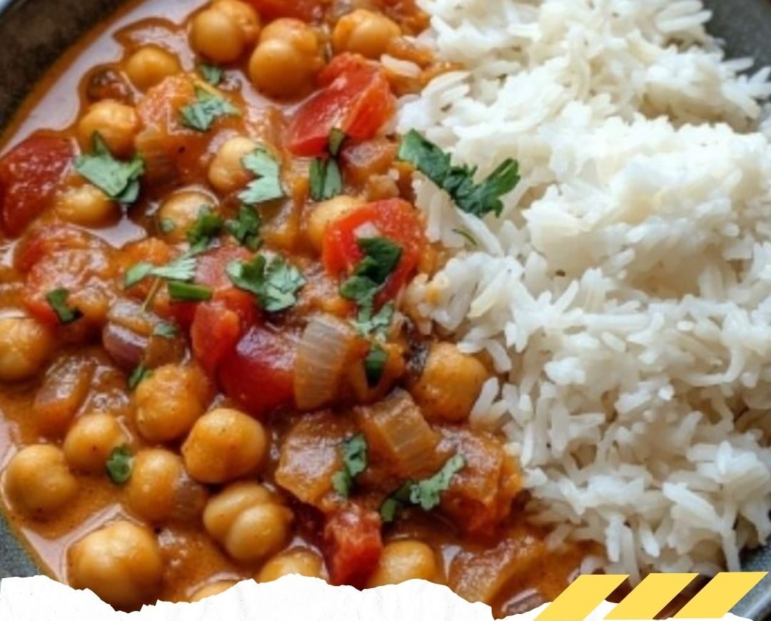 5- Servez le curry de pois chiches avec le riz. Pour une touche de fraîcheur, ajoutez de la coriandre si vous le souhaitez.