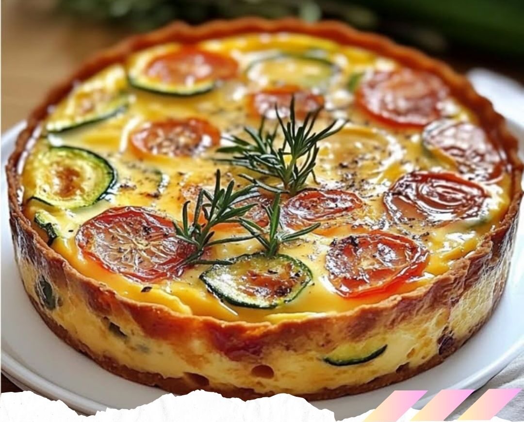 5. Versez le mélange œufs-lait-crème par-dessus, en veillant à bien répartir. Décorez le dessus avec les rondelles de tomate.
