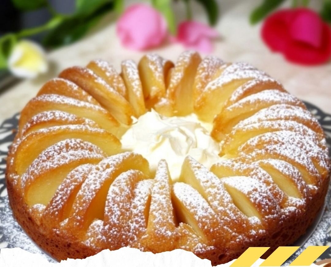 4. Versez une partie de la pâte dans le moule, disposez une couche de tranches de pommes, puis recouvrez du reste de pâte.