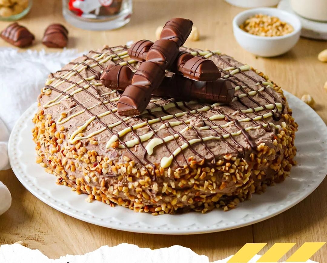 4- Avant de servir, décorer en posant les trois barres Kinder Bueno restantes au centre du gâteau.