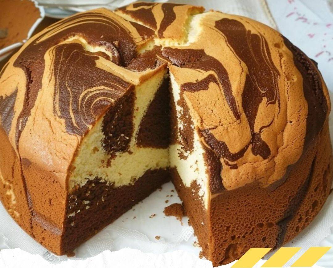 6. Versez alternativement les deux pâtes dans le moule préparé, puis utilisez une cuillère pour créer un effet marbré en dessinant des spirales.