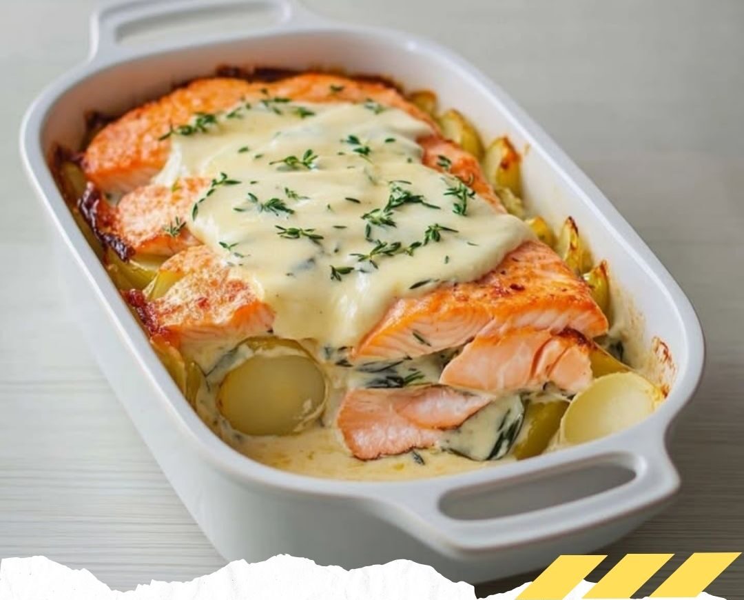 14. Servez chaud et savourez ce délicieux gratin de pommes de terre au saumon et à la béchamel.