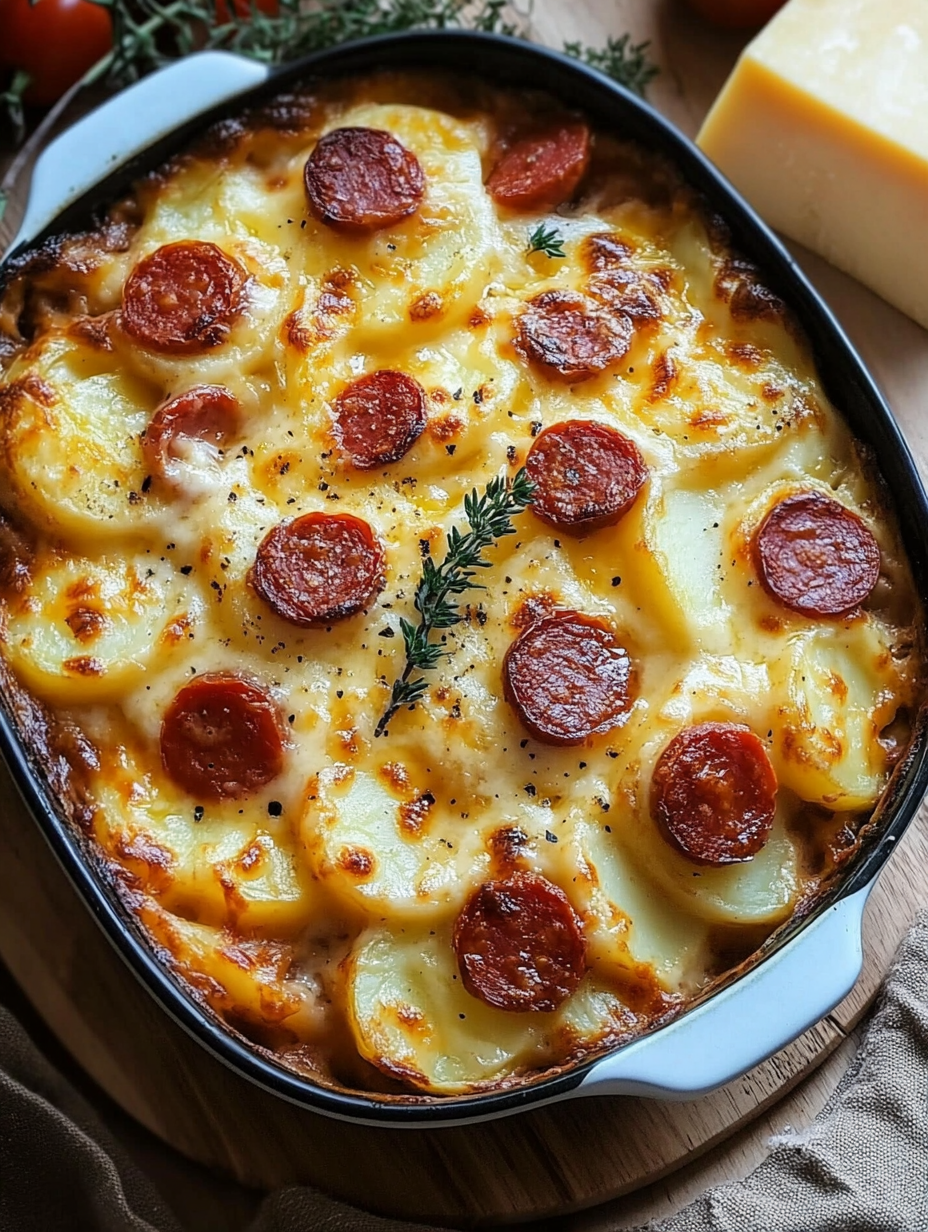 Le Gratin de Pommes de Terre, Chorizo, Tomate et Béchamel est plus qu’une simple recette. C’est un plat convivial, généreux et facile à réaliser. Avec des ingrédients simples et une préparation accessible, il promet un résultat gourmand à chaque fois. Essayez-le une fois, et il deviendra sûrement un classique chez vous.