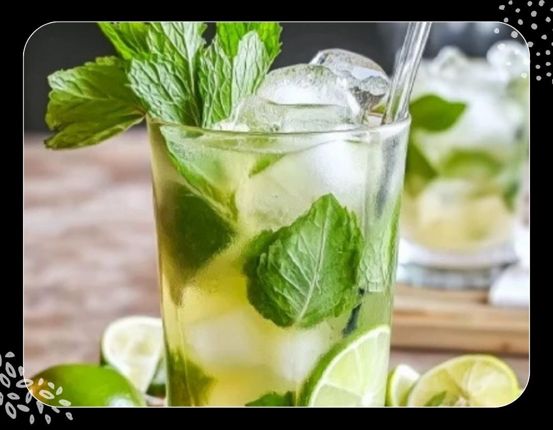 1- Dans un verre, écrasez légèrement les feuilles de menthe avec le sucre de canne et le jus de citron vert.