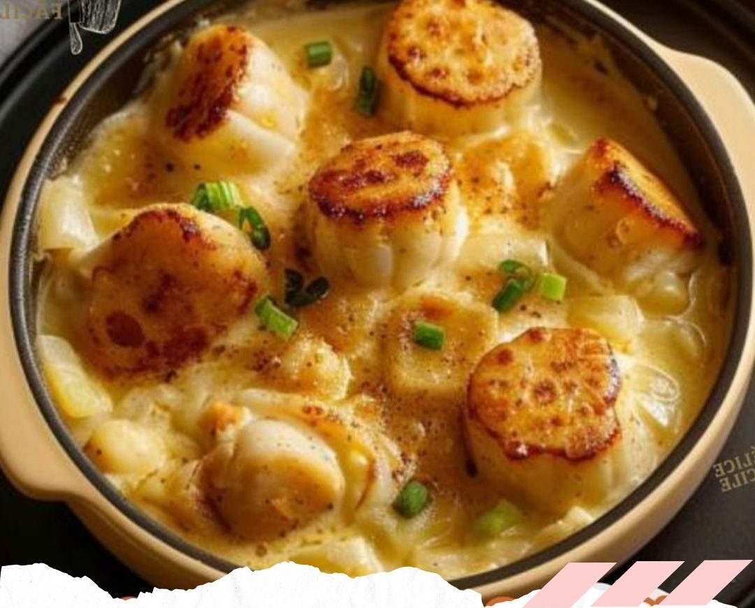 10. Dressez vos ramequins avec la fondue de poireaux, les coquilles et parsemez un peu de piment d’Espelette et de fleur de sel sur les noix de Saint-Jacques.