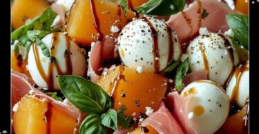 Salade de melon, jambon cru, mozzarella et basilic