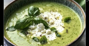 Gaspacho De Courgettes Et Basilic Avec Un Nuage De Chèvre Frais