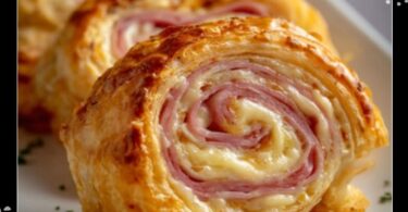 Feuilleté gourmand: roulé apéritif au jambon et fromage