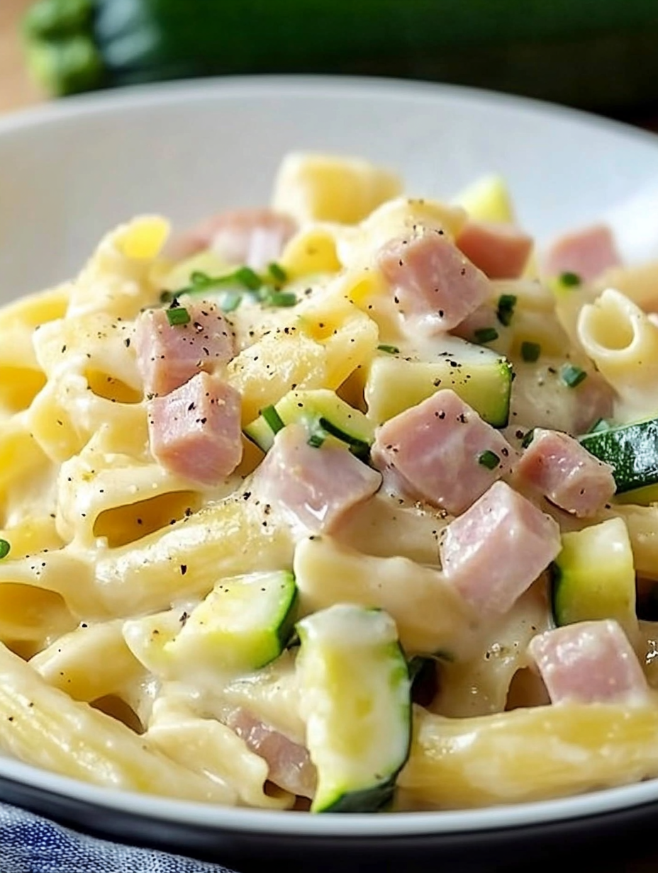 Pâtes Crémeuses aux Courgettes et Jambon