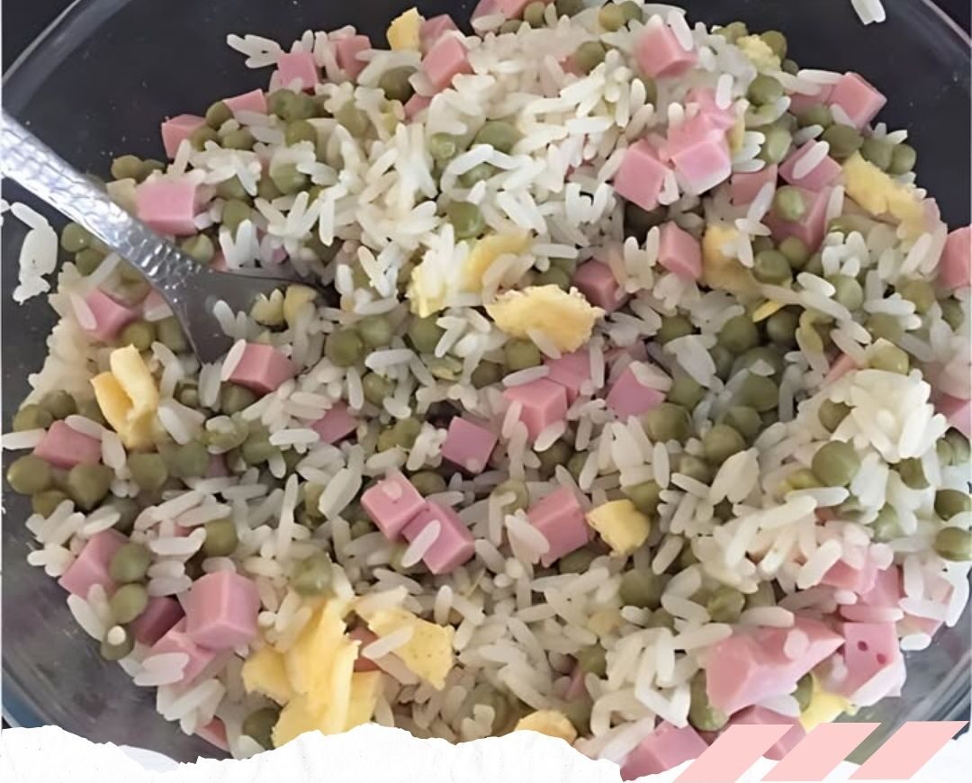 6. Mélangez le riz cuit, les petits pois, l’oignon, le jambon, et l’omelette dans la poêle.