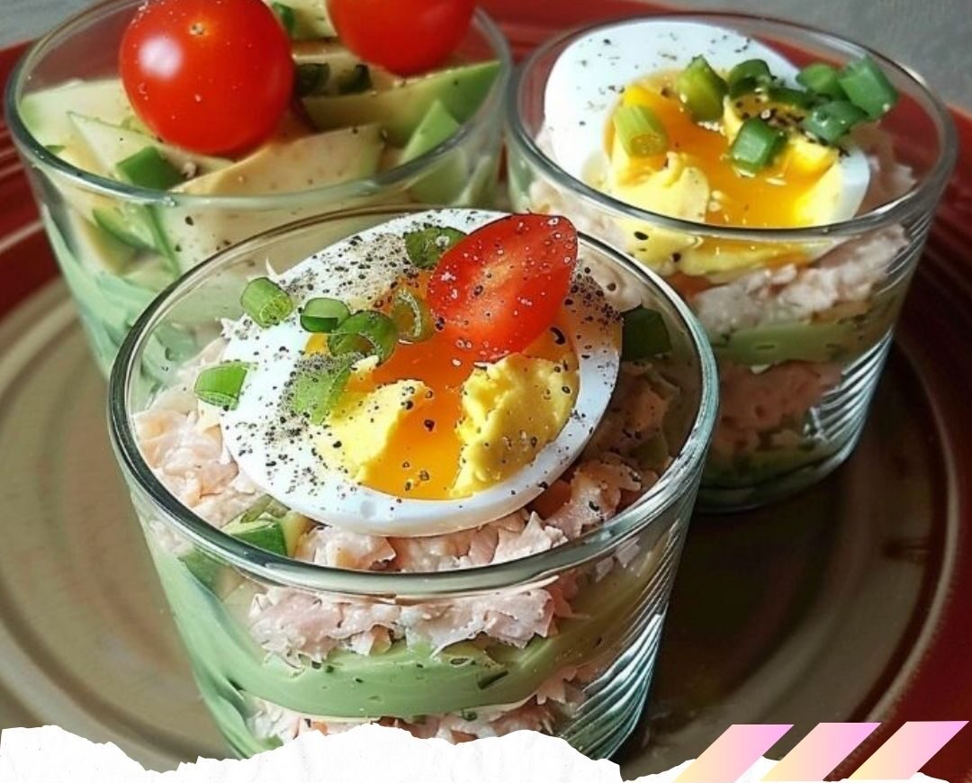 6. Répétez les couches jusqu’à ce que les verrines soient remplies, en terminant par une garniture d’œuf dur émietté.
