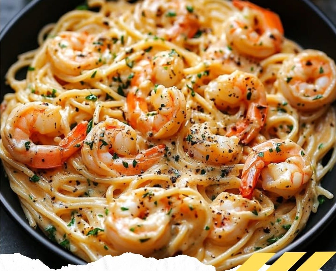 Spaghettis aux crevettes et sauce crème ail & persil