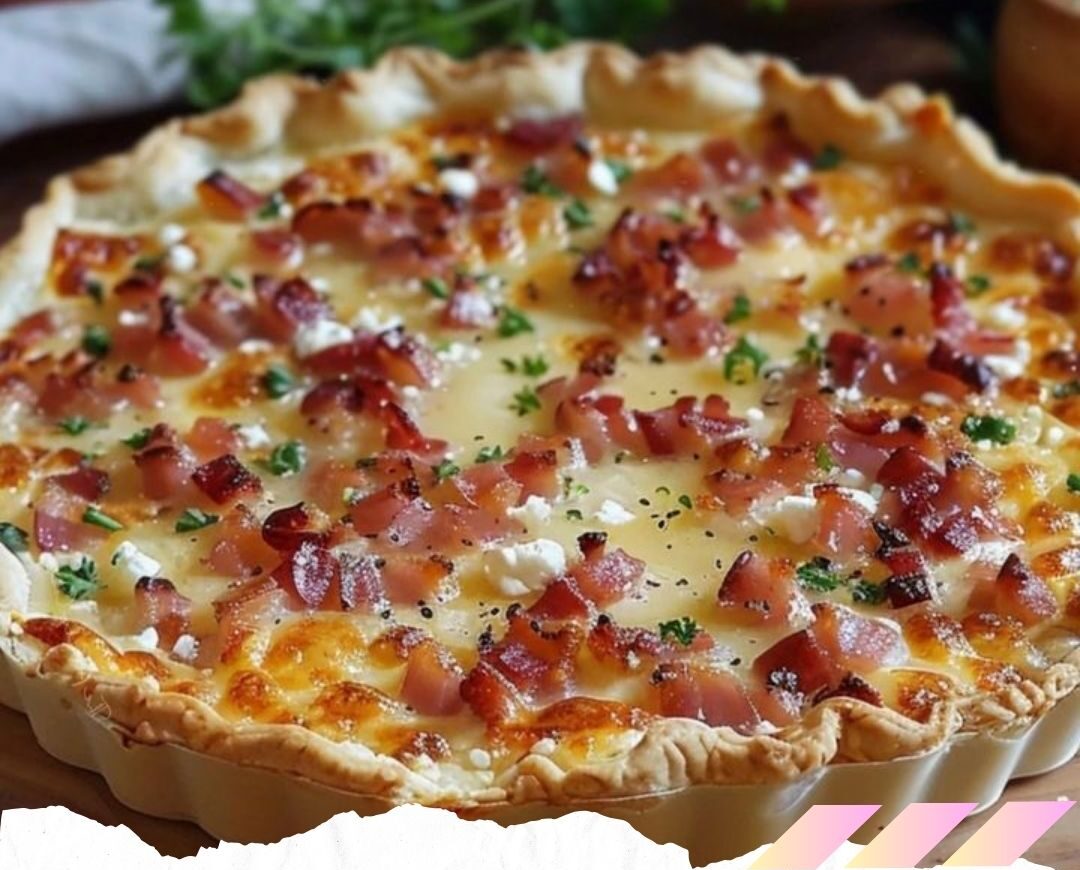 7. Versez ce mélange sur les lardons et le camembert dans le moule à tarte.