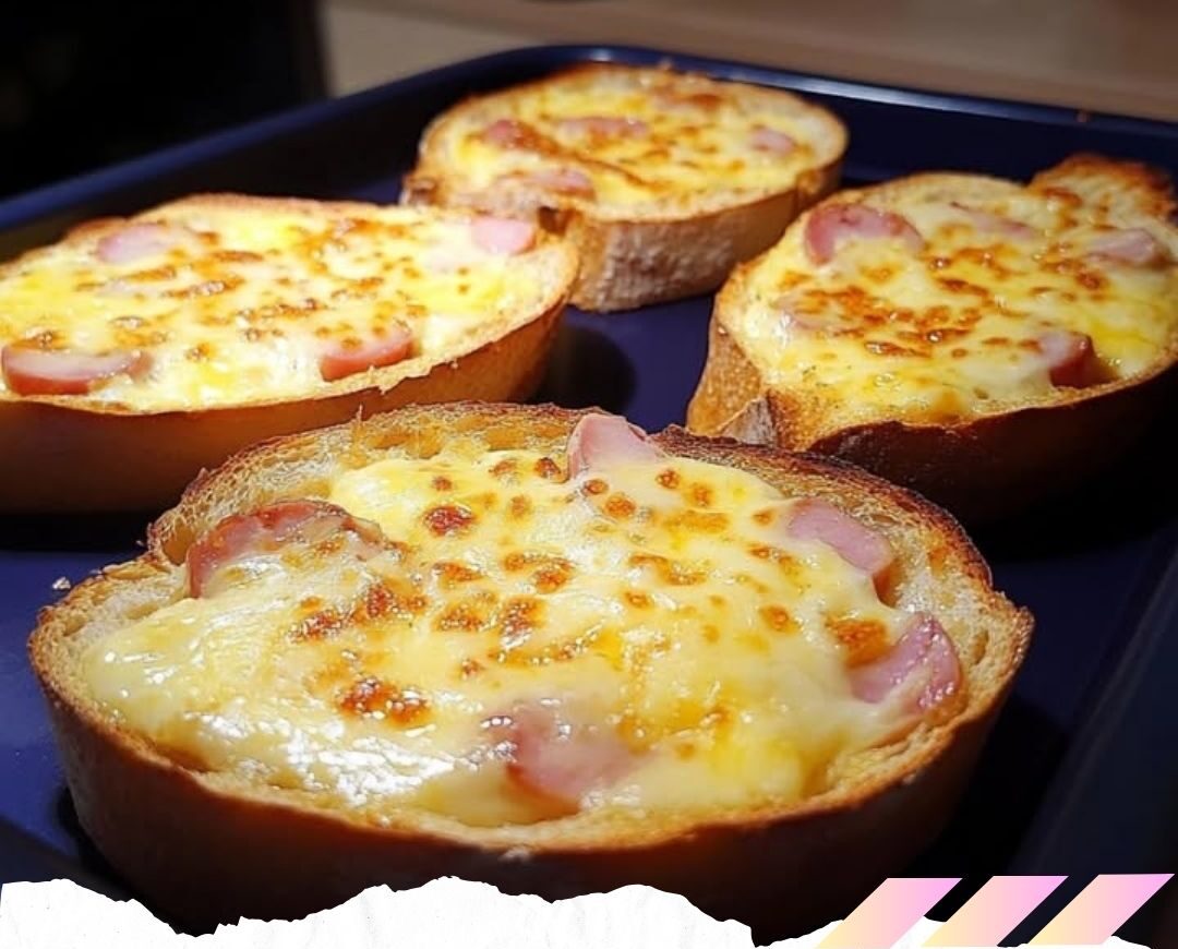 7- Servez les Tartines Gratins au Jambon et Fromage chaudes et savourez ce délicieux plat gratiné au four.