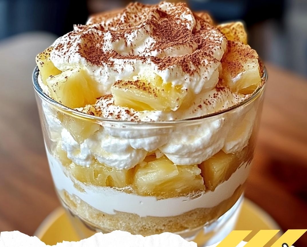 5- Ajoutez une couche de crème au mascarpone, puis quelques tranches d’ananas.