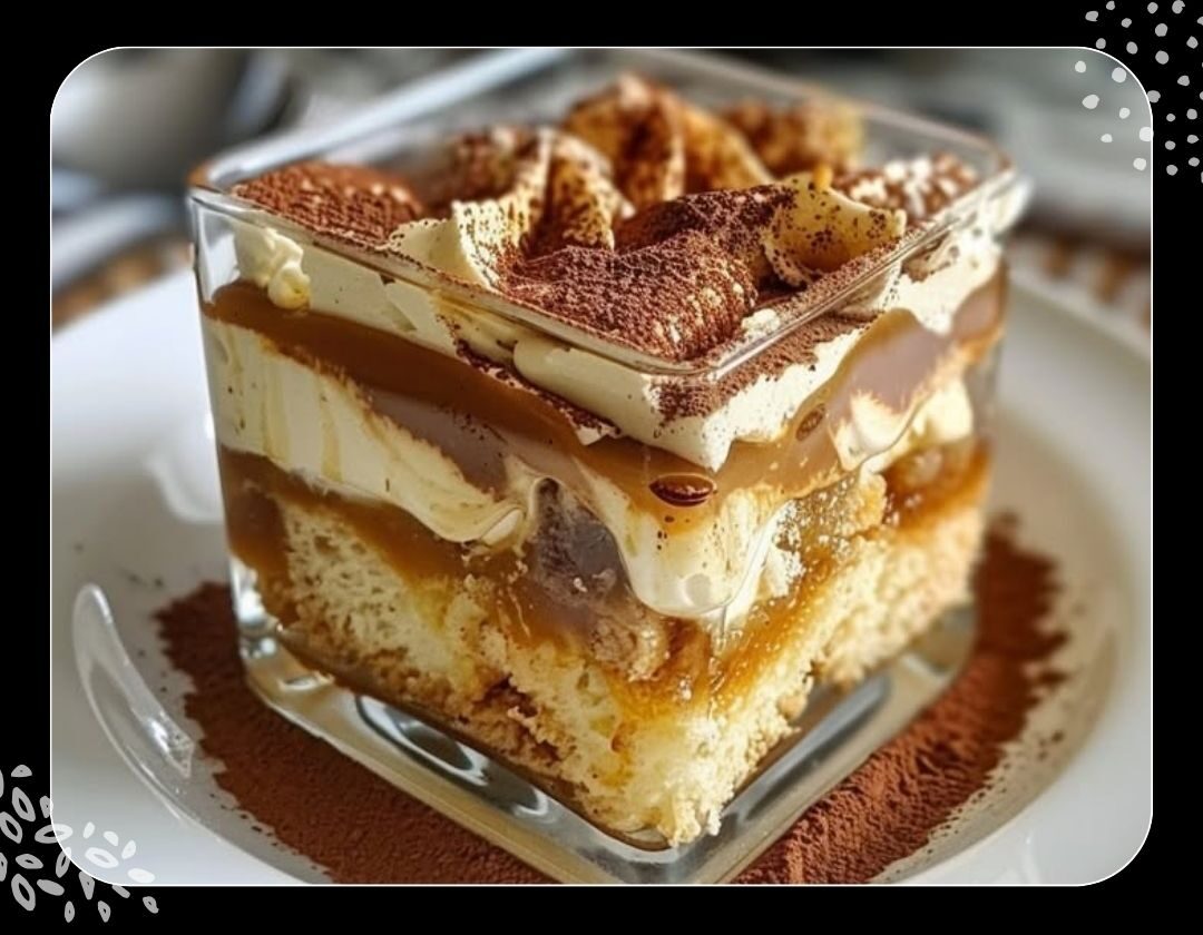 6- Versez une couche de crème au mascarpone, puis une couche de caramel au beurre salé.